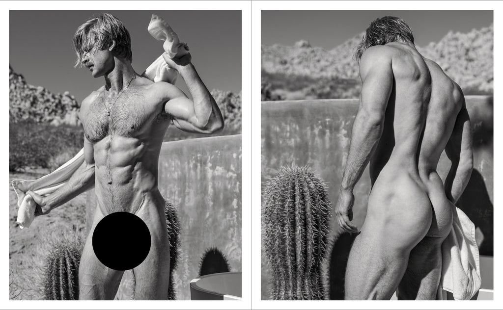 This edition of the CASE STUDY series captures the raw rugged beauty and sense of serenity of the California desert including Joshua Tree and Wonder Valley in 29 Palms. We also travel to the rustic mountain wilderness of Idyllwild, California with its blooming wildflowers and towering trees along the summit of the San Jacinto Mountains. These photographs bring to mind the retro sensibilities of 1970s Colt Studios and the various Californian male photography guild images of the '50s and '60s. The images are nudes and are completely uncensored.